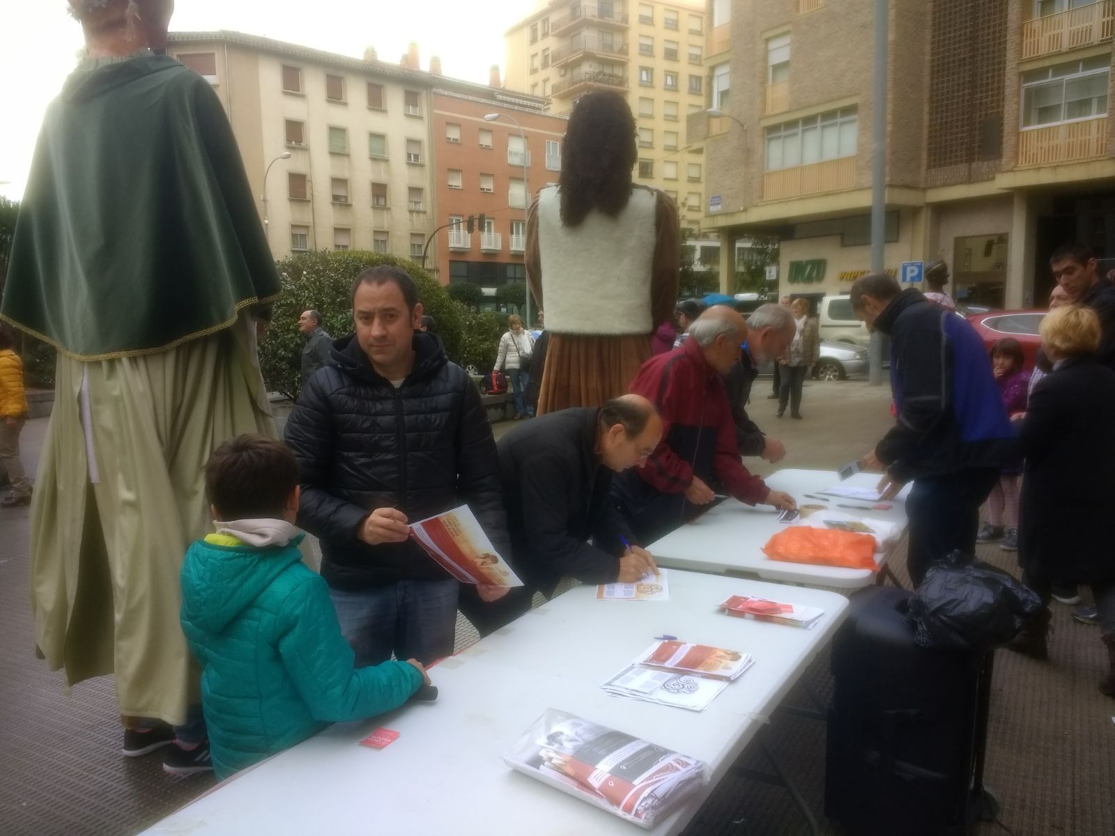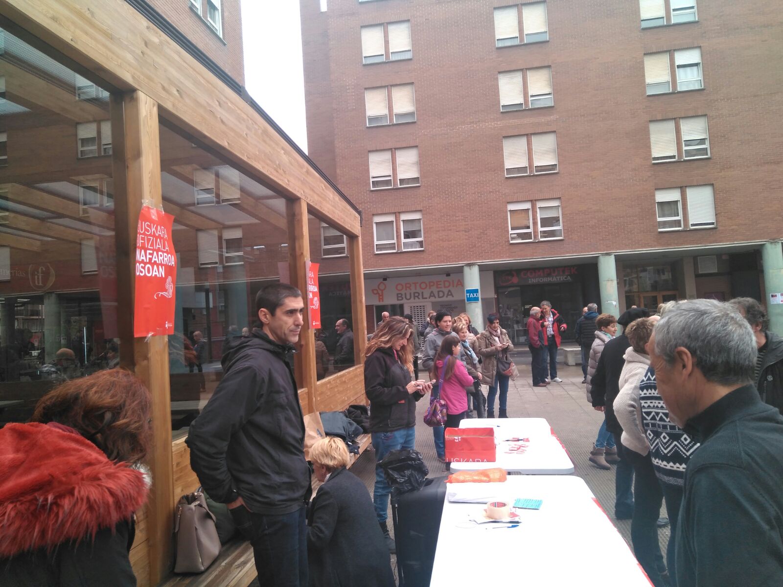 Esate baterako, Burlatan, herritar ugari bildu zen larunbatean eskariak jasotzeko mahaiaren bueltan.