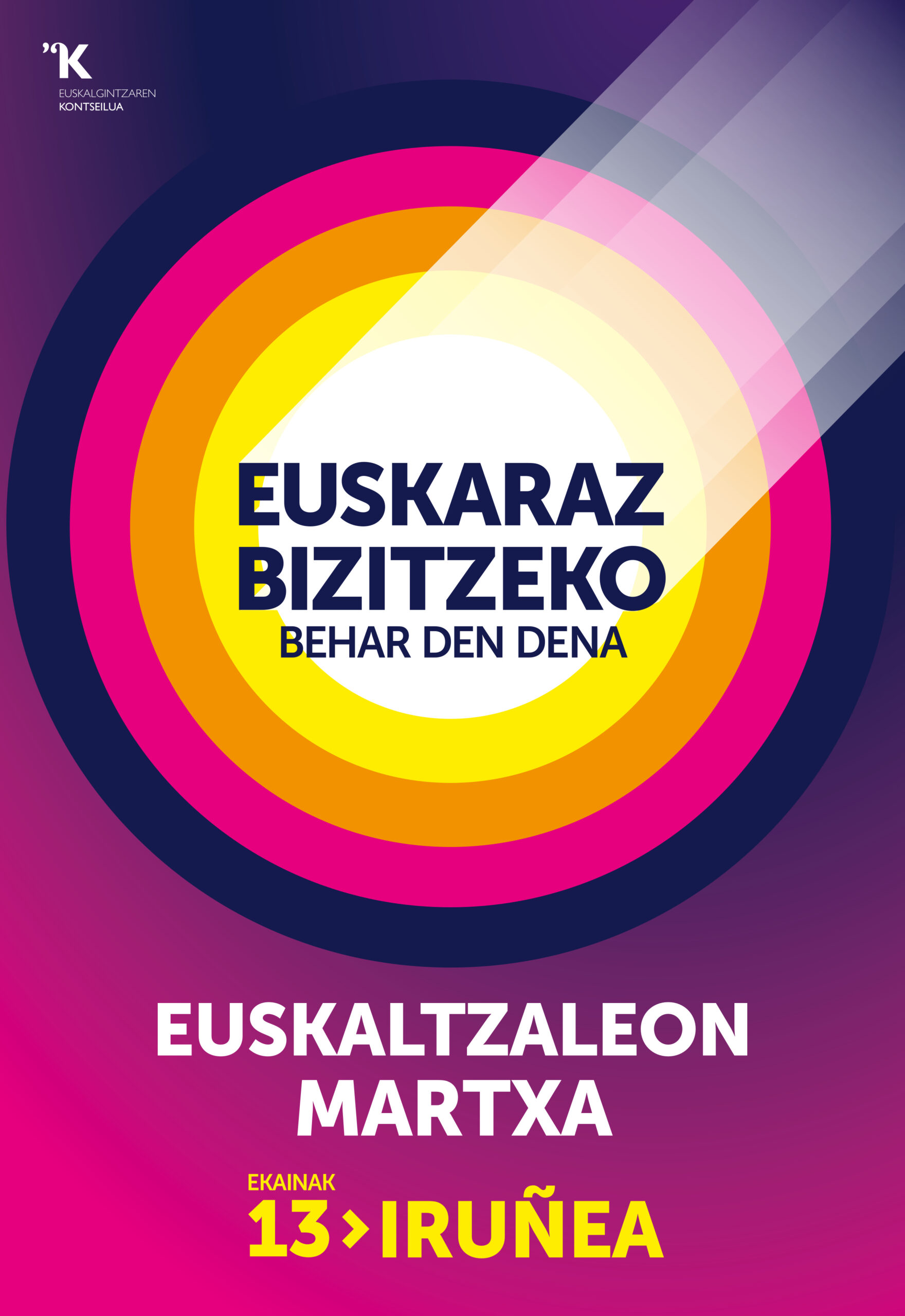Euskaraz eta euskal hiztun komunitateak bizi dugun larrialdi linguistiko egoeratik Pizkunde berri batera igarotzeko premia gizarteratzea helburu, 2026ko ekainaren 13an Euskalgintzaren Kontseiluak Euskaltzaleon Martxa antolatuko du Iruñean, hiru zutaberen bidez euskararen ofizialtasun osoa, hizkuntza politiketan jauzia eta euskaltzaletasunaren aktibazioa aldarrikatzeko.